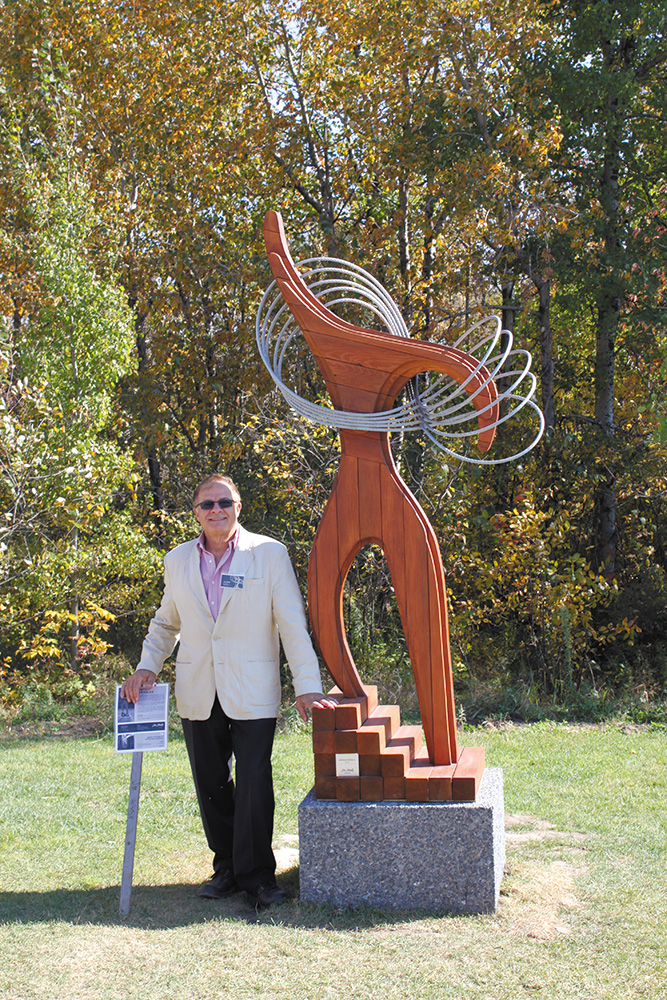 During the ceremony, the artist was awarded a certificate for participating in the symposium. He also took this opportunity to give a copy of his latest book to the mayor of Lac-Mégantic, Colette Roy-Laroche. He made ​​a speech to the mayor, the deputies and the crowd, explaining the concept and the realization of his monumental work, the Capteur d’étoiles.